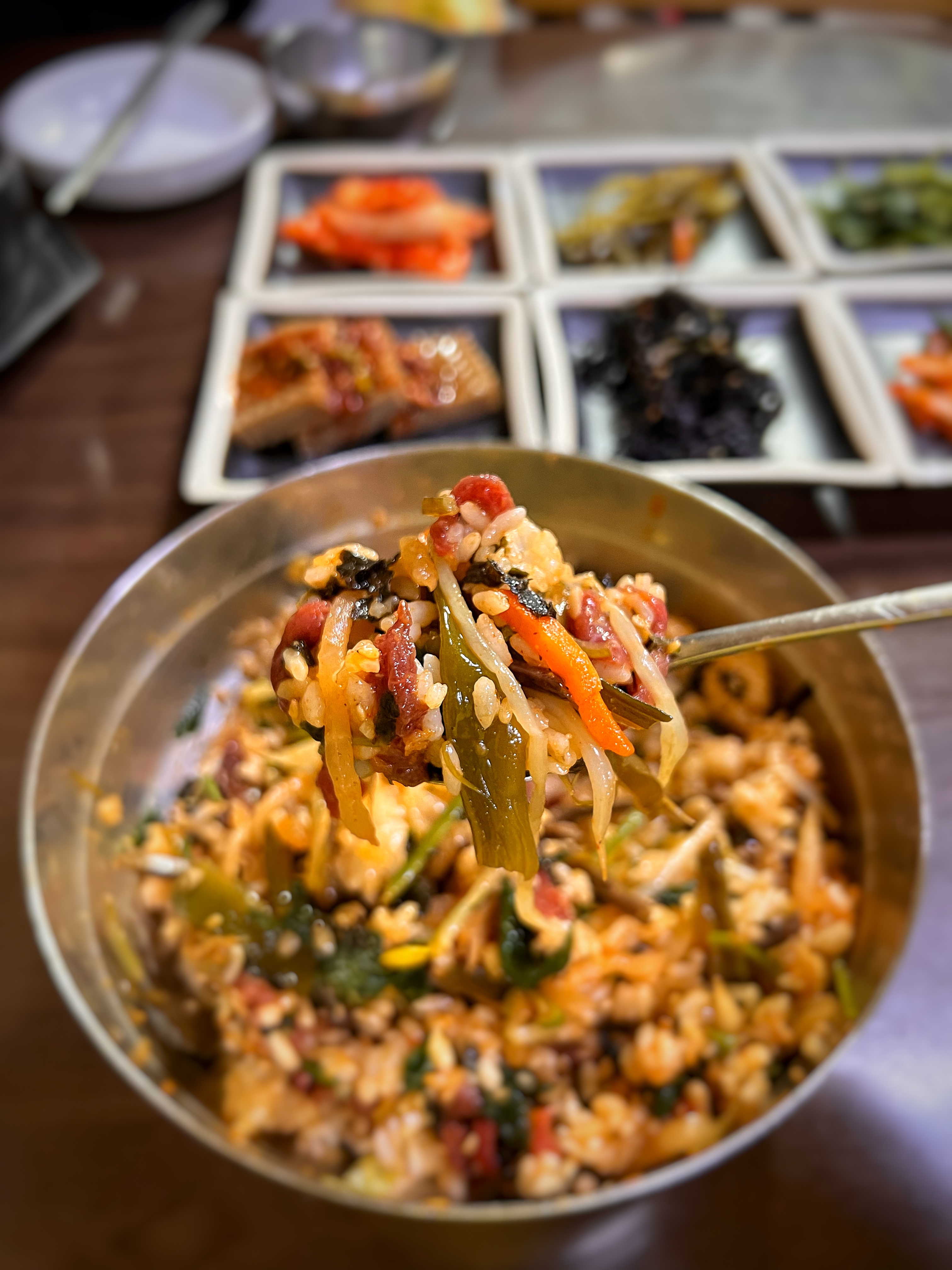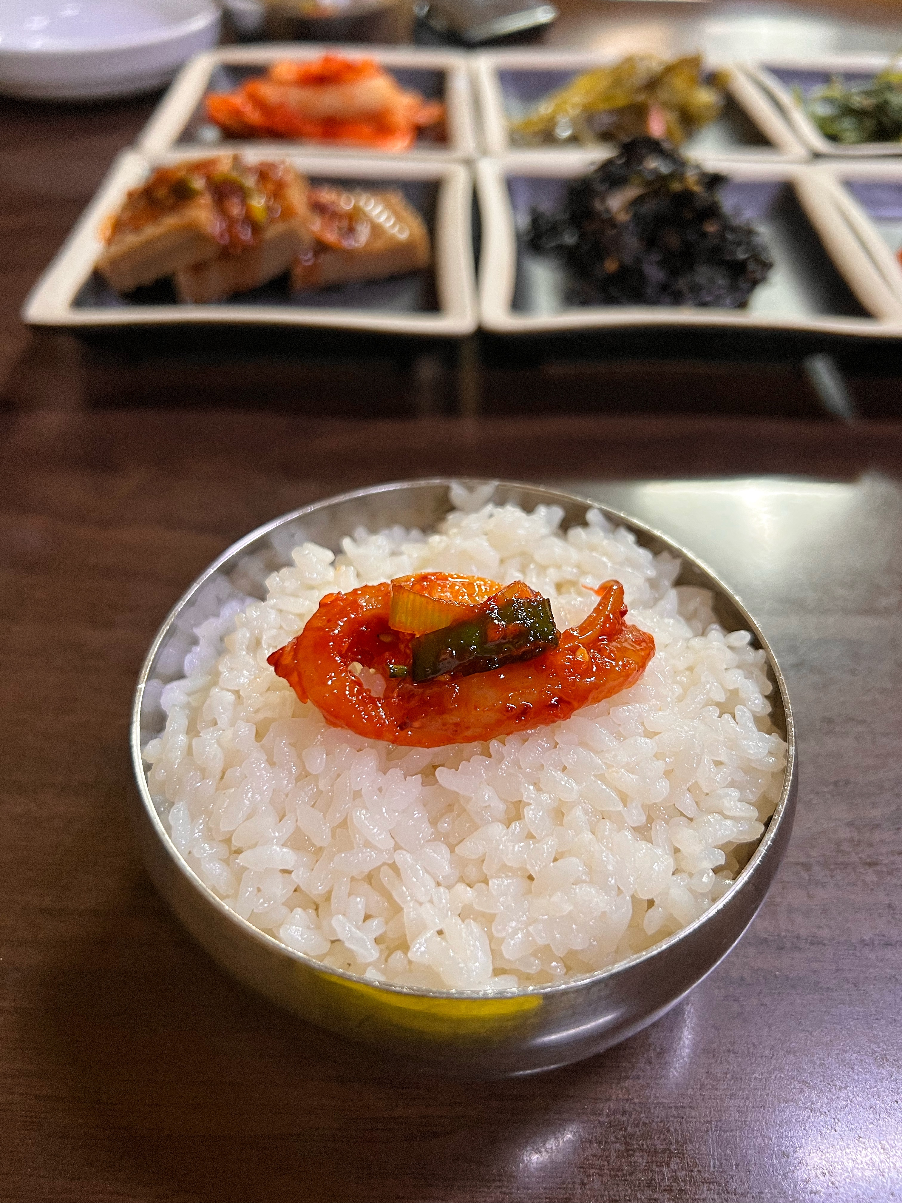 육회비빔밥을 비비는 동안 한우국밥에 딸려나온 하얀 쌀밥에 오징어젓갈 한 점을 올려 먹었더니 입맛이 돈다.