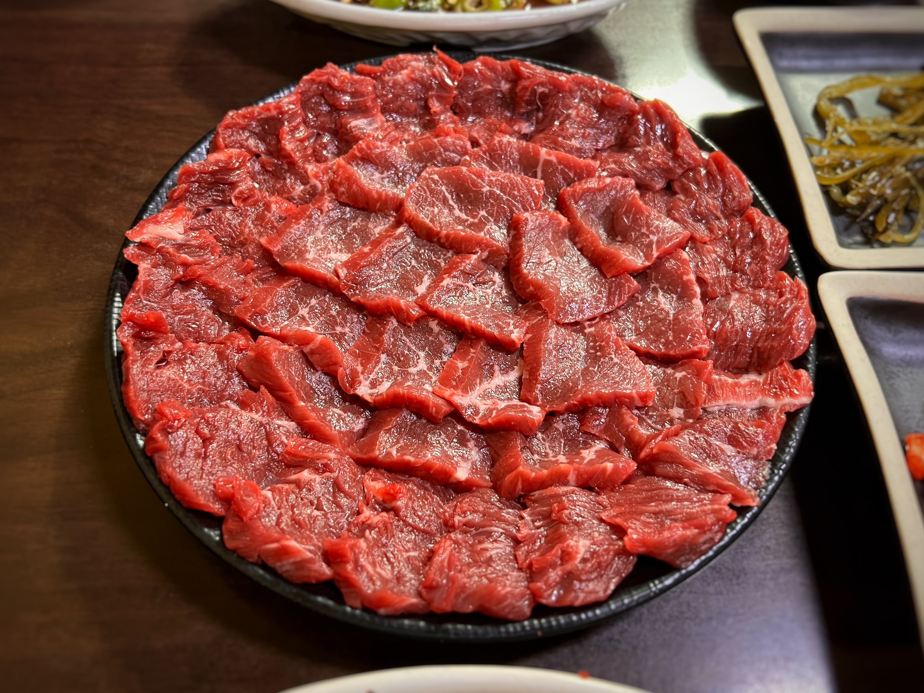 고기의 결 반대로 썰고, 고기의 결대로 썰고. 두 가지 스타일로 고기를 썰어서 담아준다. 양념장의 단맛이 거슬린다면 따로 소금을 요청해서 콕 찍어 먹어도 좋겠더라.