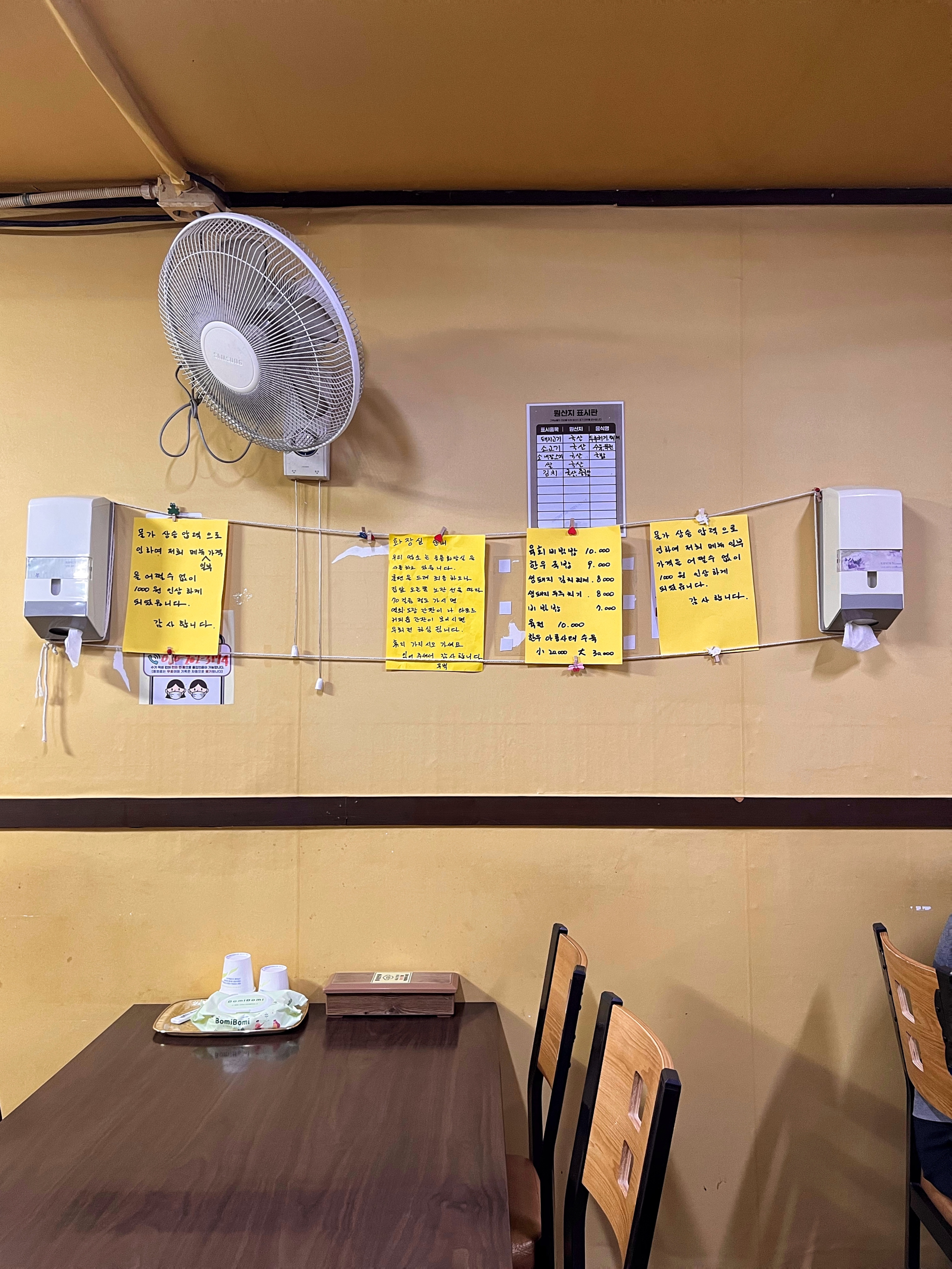 가게 작고 테이블이 많지 않다. 낮에는 식사메뉴를 취급하고 저녁에는 뭉티기나 아롱사태수육, 육전 같은 메뉴로 소주한잔 하는 분위기 같았다.