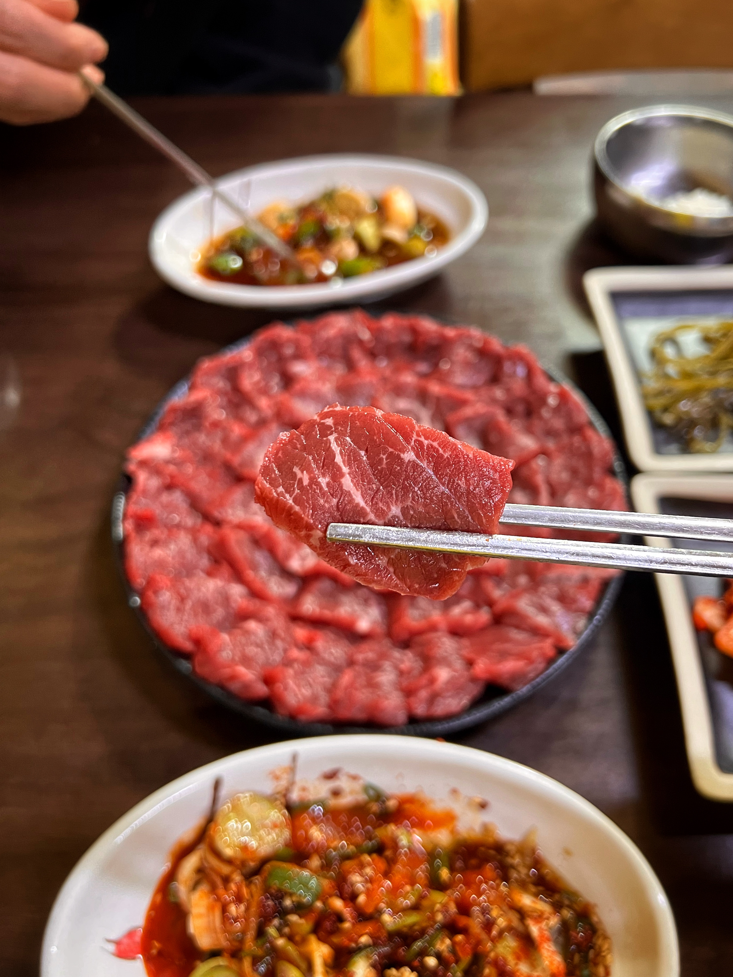 뭉티기를 워낙 좋아해서 대구 갈 때면 항상 뭉티기를 먹고 왔다. 부산에는 뭉티기 집이 없어서 안타까웠는데 최근에 뭉티기 집들이 많이 생겨 기쁘다. 다만 대구와 비교하면 아직 아쉬운 점이 많다.