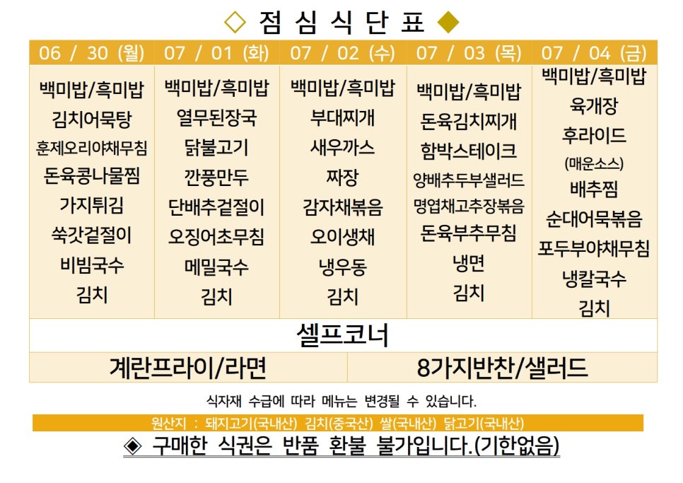1. 영상산업센터 7월 첫째주 주간 메뉴표