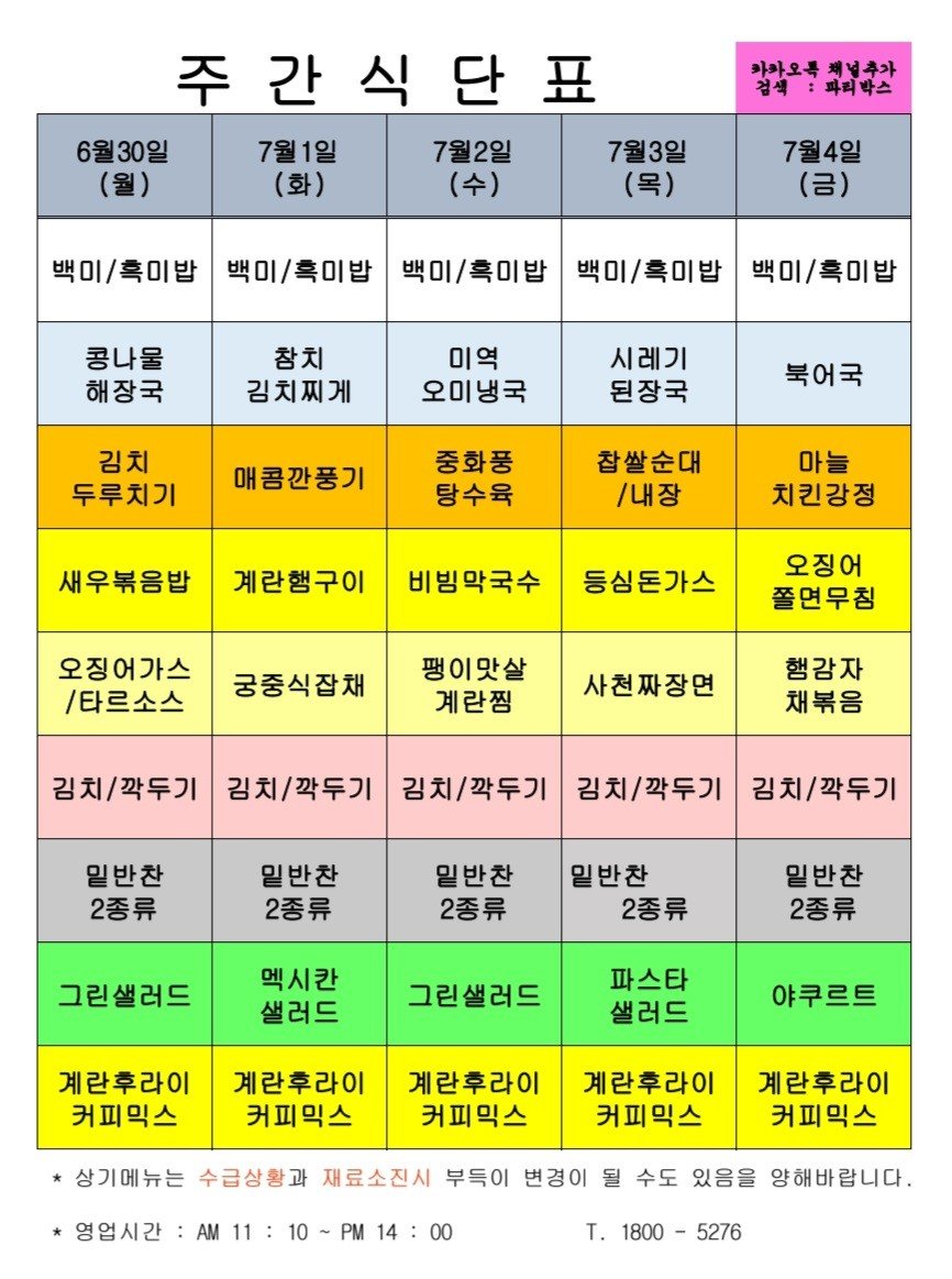 3. 다와푸드 센텀점 7월 첫째주 주간 식단표
