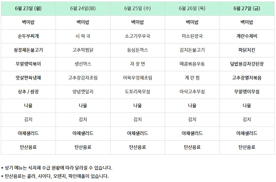 | 센텀 구내식당 메뉴 식단표 6월 넷째주 (06.23 - 06.27) (2) | 2025.06.23 |