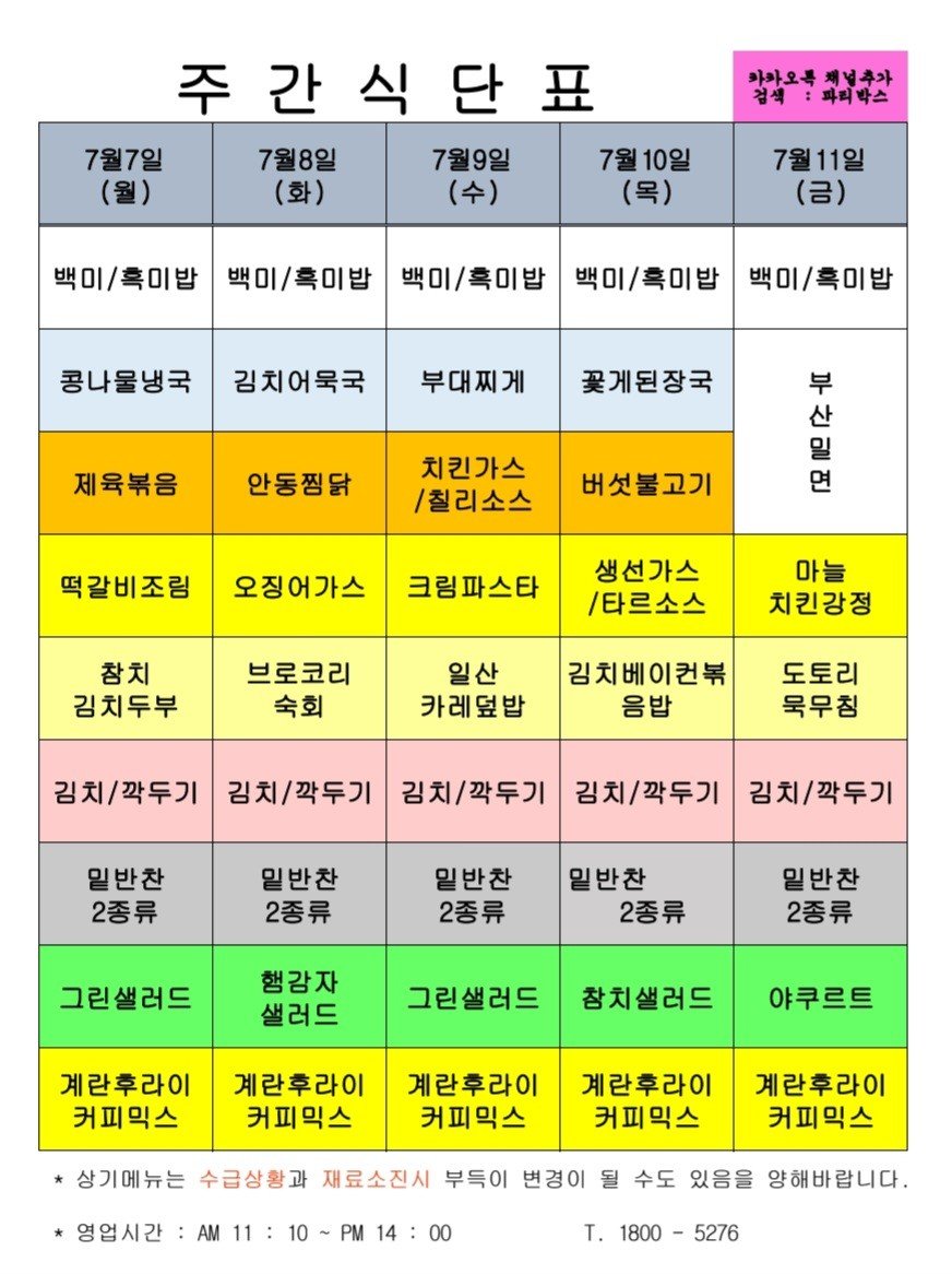 5. 동서대학교 센텀캠퍼스 파티박스 7월 둘째주 주간 식단표