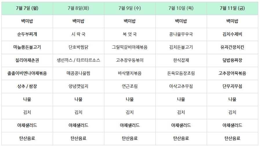 7. 센텀 스카이비즈 정담식당 7월 첫째주 식단표