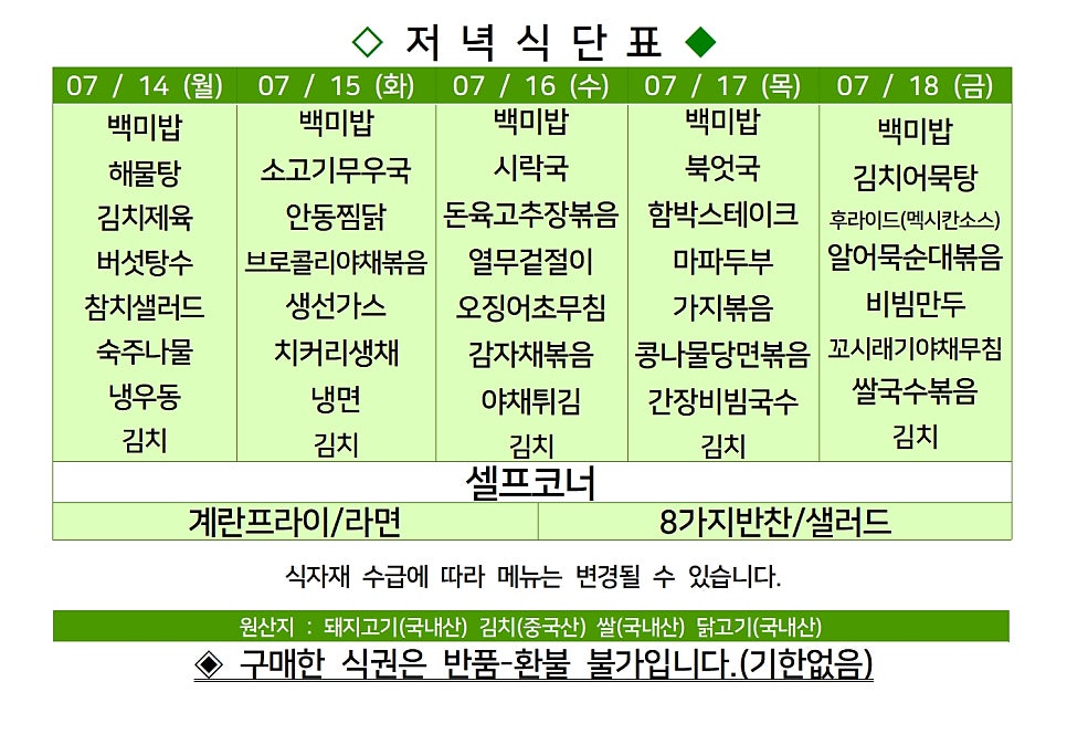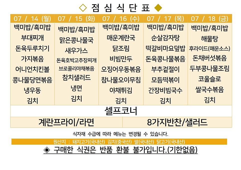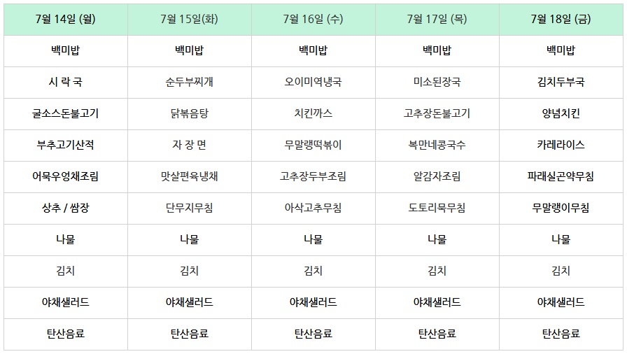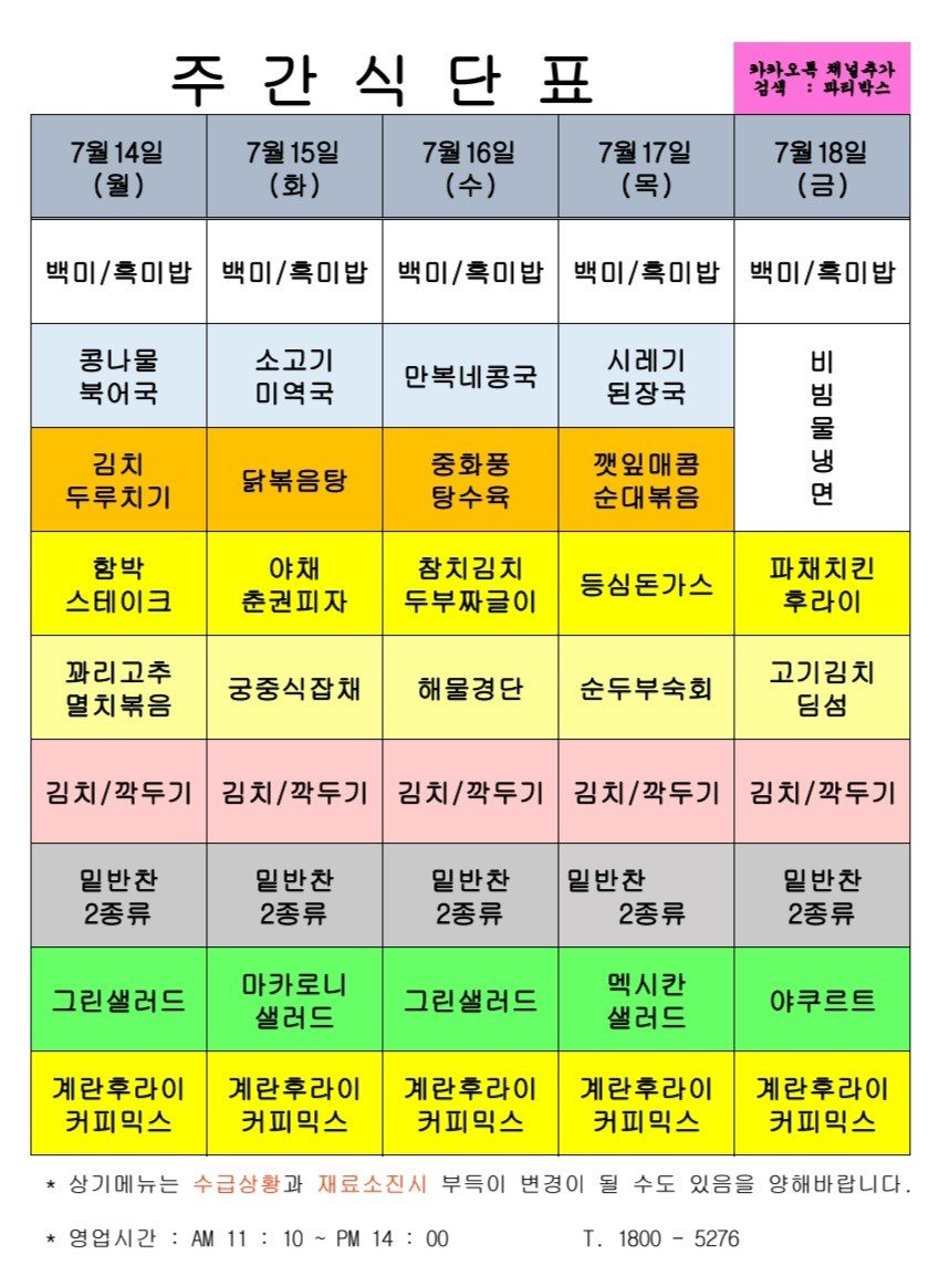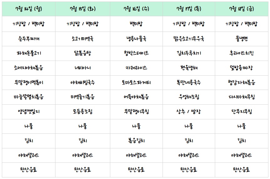1. 영상산업센터 7월 셋째주 주간 메뉴표