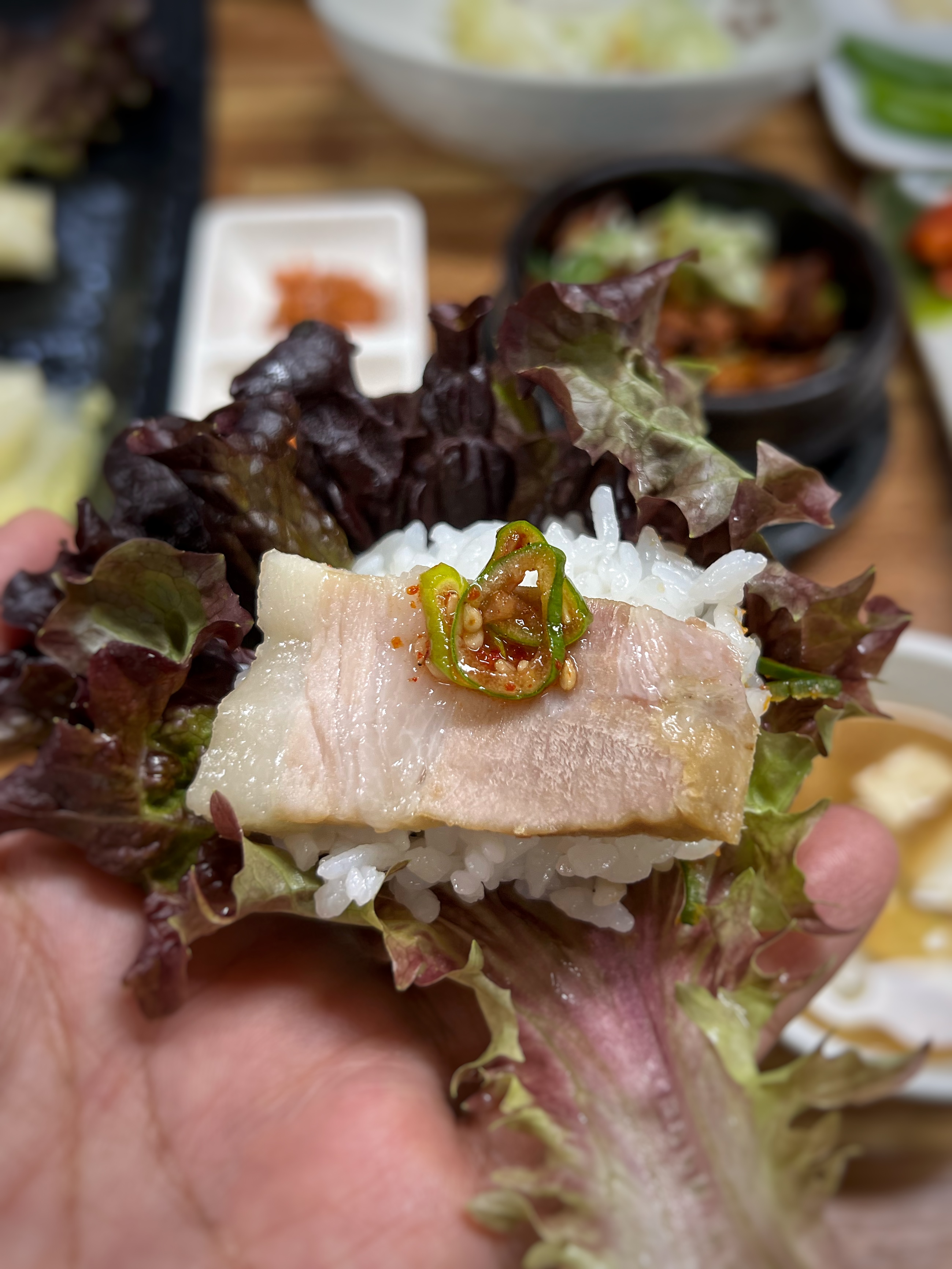 누구나 좋아할 맛이라고 표현했던 제육과 잘 삶아 고소한 수육을 비롯해 반찬들 맛도 좋아 공깃밥을 참을 수 없었다.