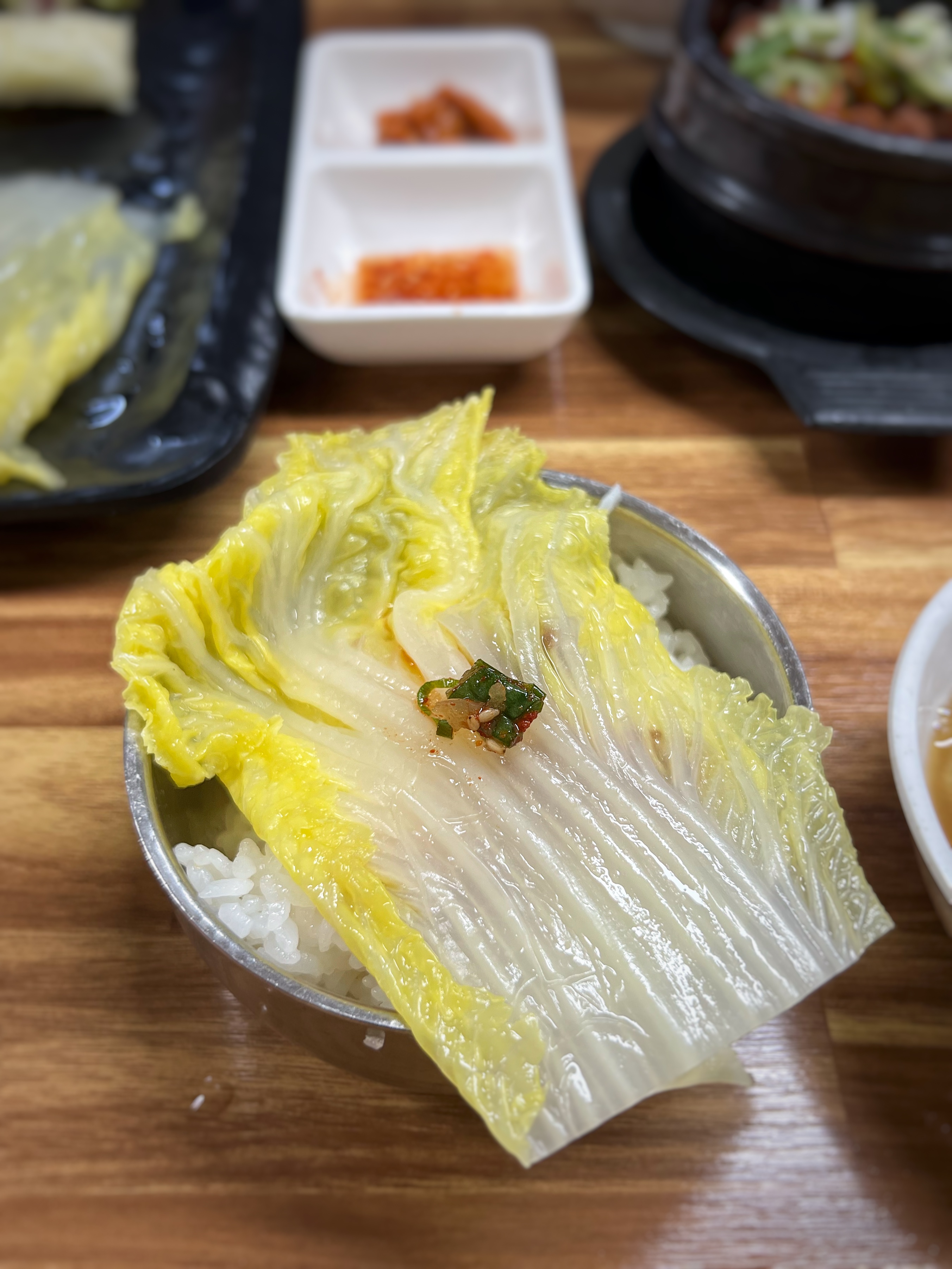 아삭아삭한 생배추보다, 이렇게 데쳐주는 배추가 쌈으로 싸서 즐기기 그만이다.